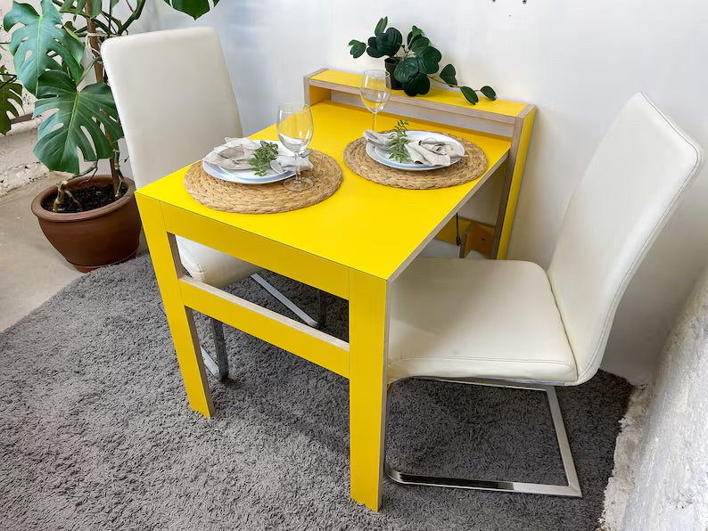 •Our New Design transformable desk for small and tiny spaces. Usable as a Home Office and Work Space Desk or Dining and Kitchen Table.